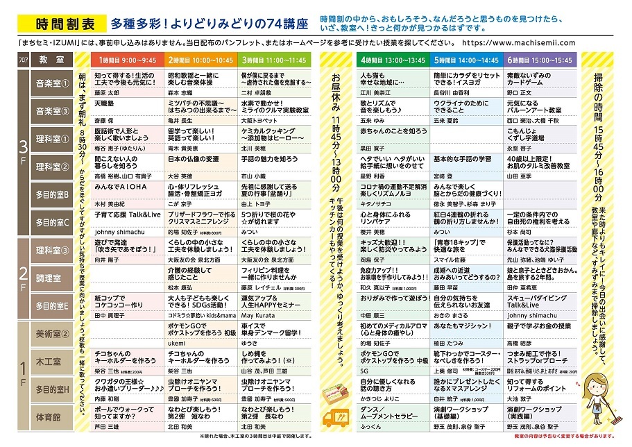 まちセミ・IZUMI 2022 (74講座)の時間割が完成しました!