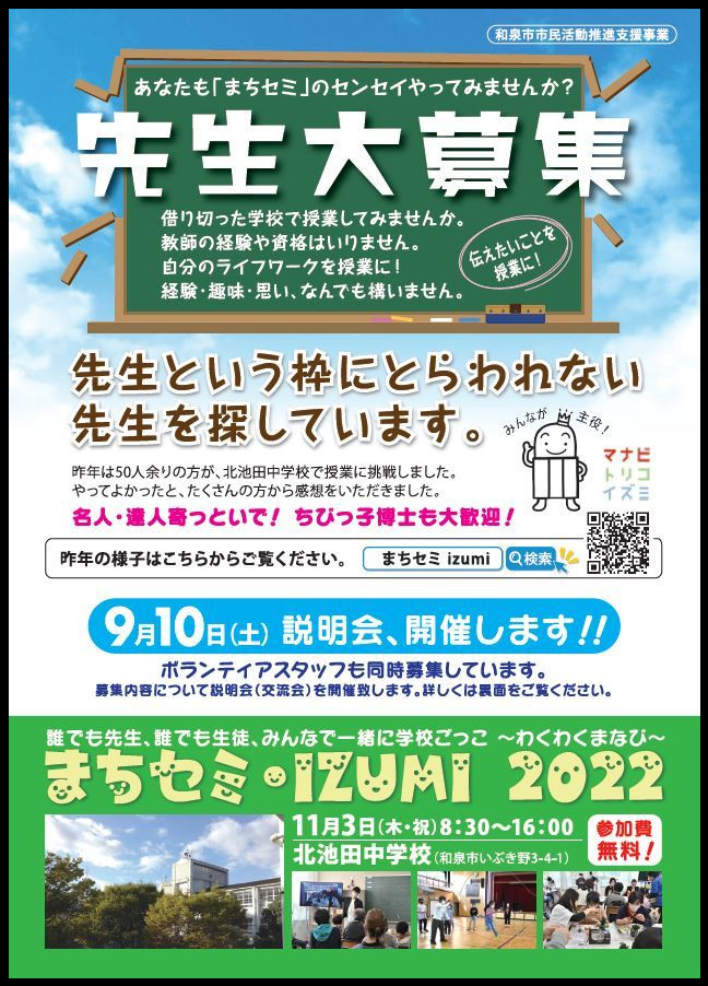 まちセミ・IZUMI 2022 センセイ申込フォームができました