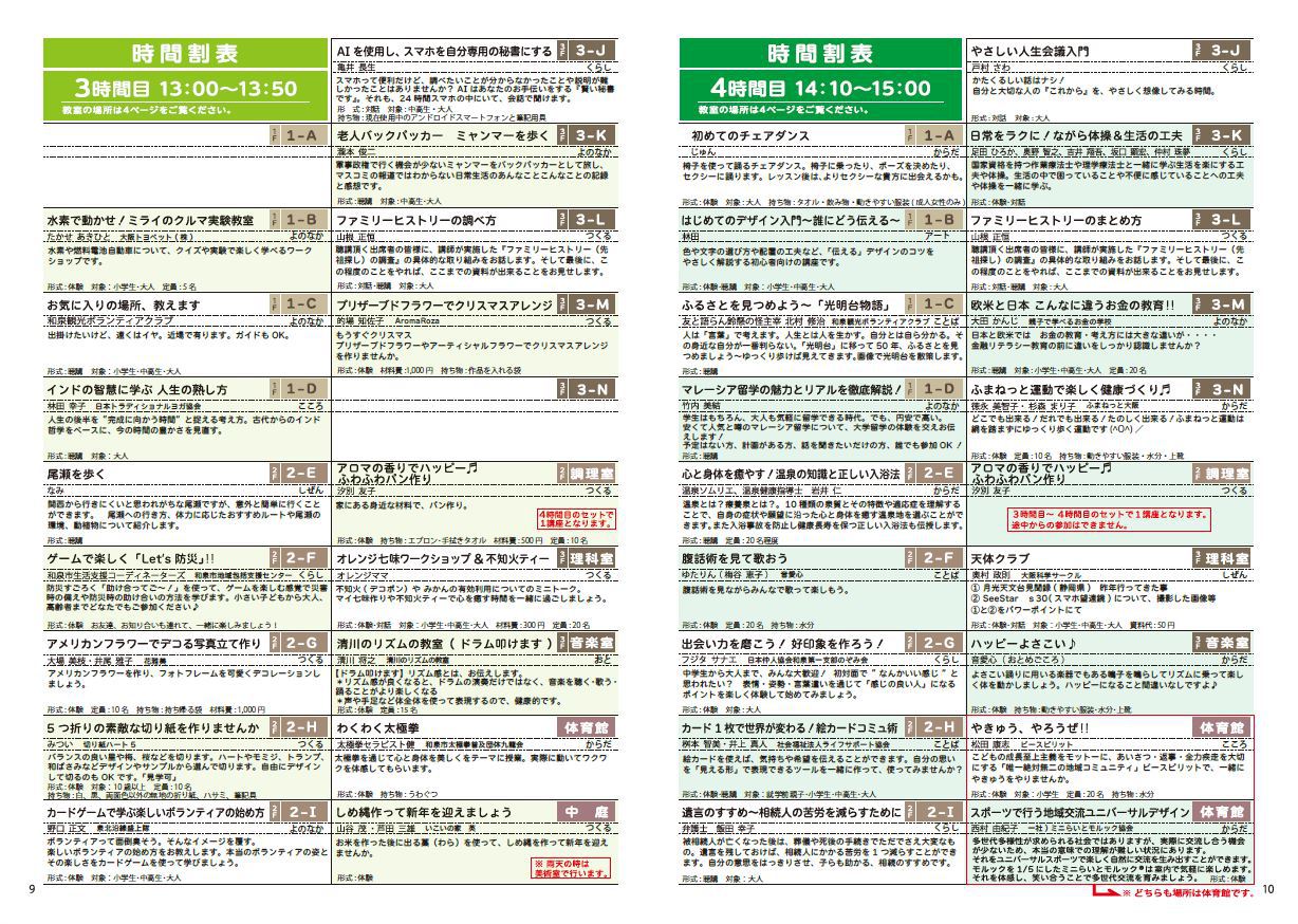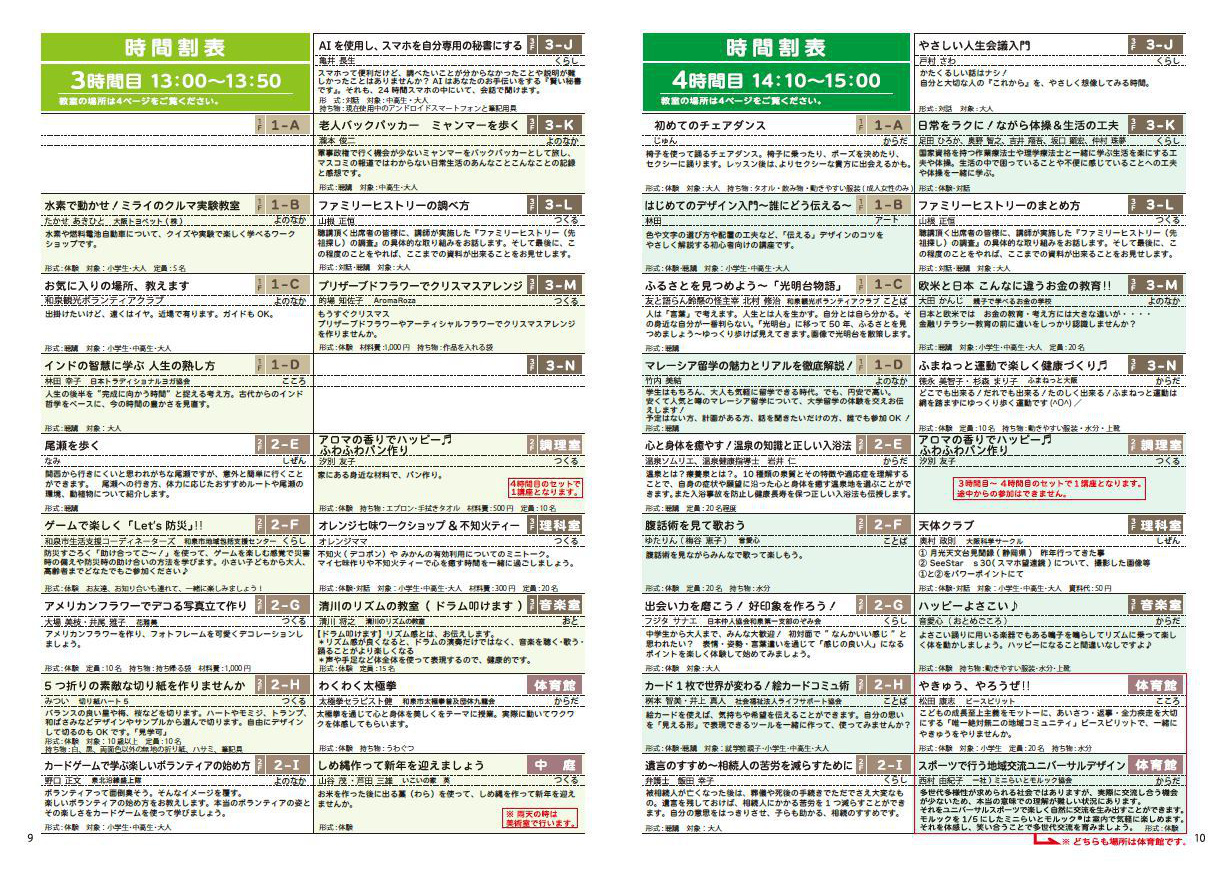 受付、教室案内、駐輪場の整理、聴講ボランティア