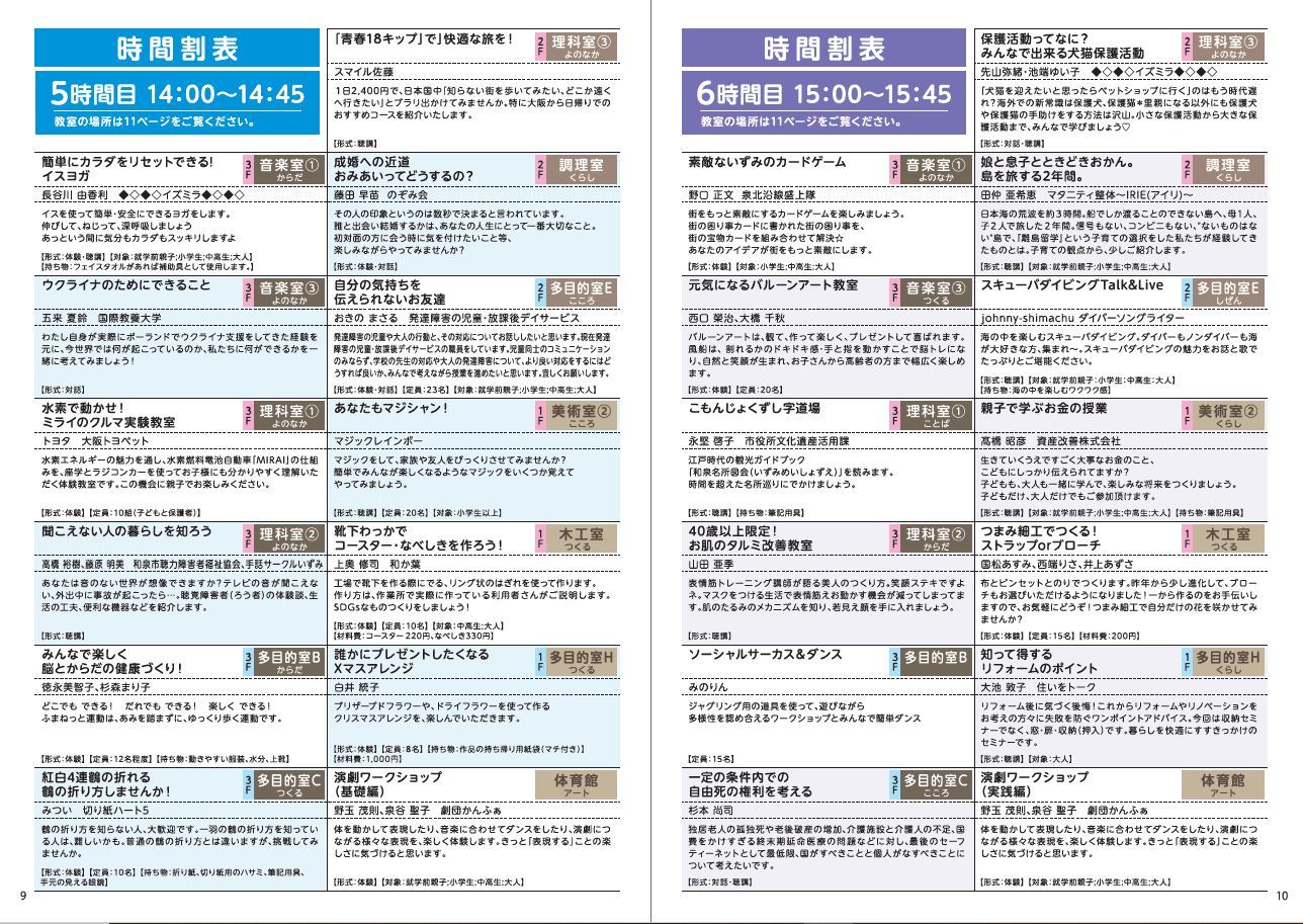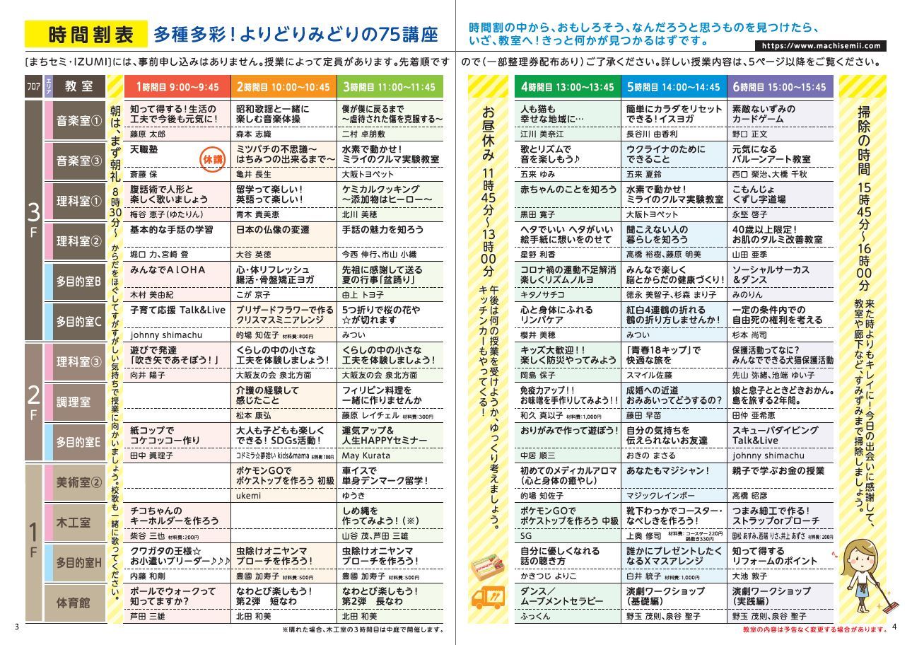 まちセミ・IZUMI 2022 (74講座)の時間割が完成しました!
