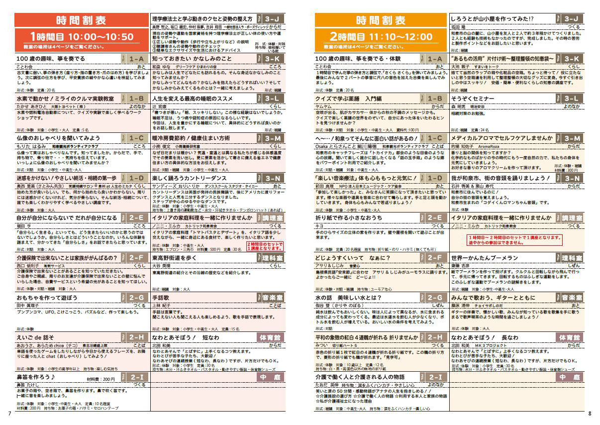 受付、教室案内、駐輪場の整理、聴講ボランティア